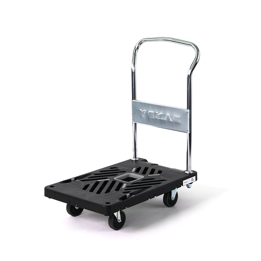 グッドデザイン賞受賞の超軽量プラスチック台車です。DANDYのフラッグシップモデルで真ん中に手持ち用のハンドル穴が空いており、車への出し入れや階段の登り降りが楽です。車輪も簡単に手でつけ外しできるので利用しないときに邪魔になりません。